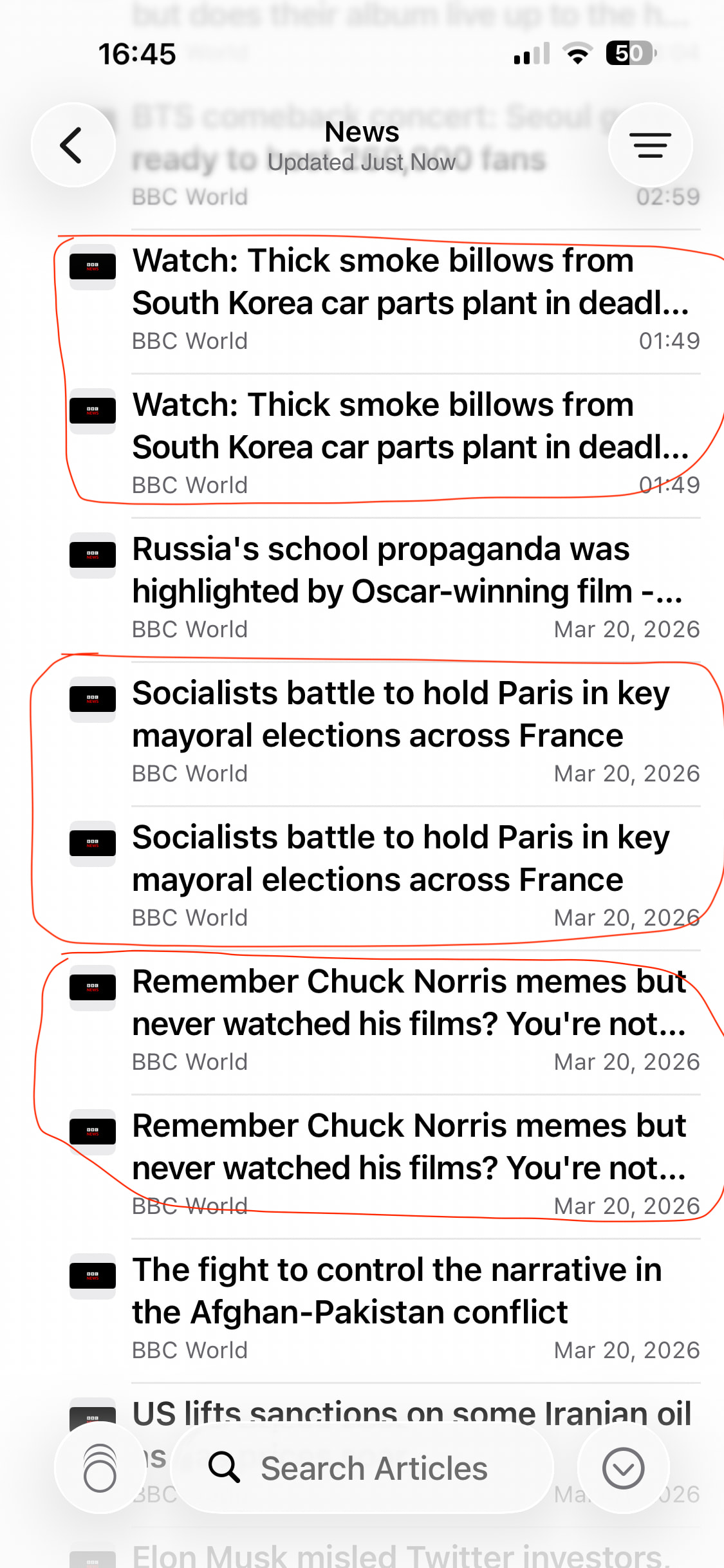I have some articles always come with duplicates, sometimes even tripled, especially BBC (see screenshot). I use NNW on Mac, iPhone and iPad synced across via iCloud. Not sure how to fix it or where to start?