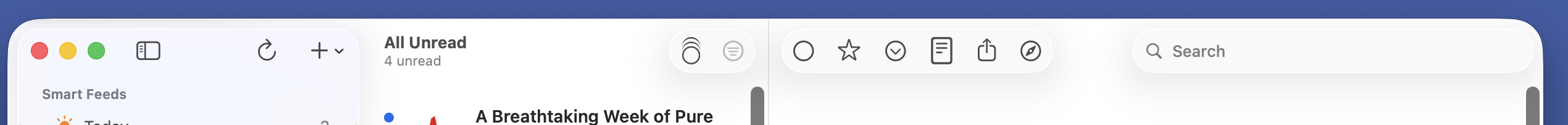 I wondered if resizing the window (which was already quite wide on a Studio Display) would trigger something, but no, it did nothing regardless of the width of the window (also tried adjusting height - in for a penny etc). What seems to have triggered a ‘correct’ redraw was punting the app into full screen mode (green button) then back into windowed. I have absolutely no idea if it was indeed this, but I thought it useful to mention what I did and how it got back to being ‘normal’ and persistent after restartign the app.