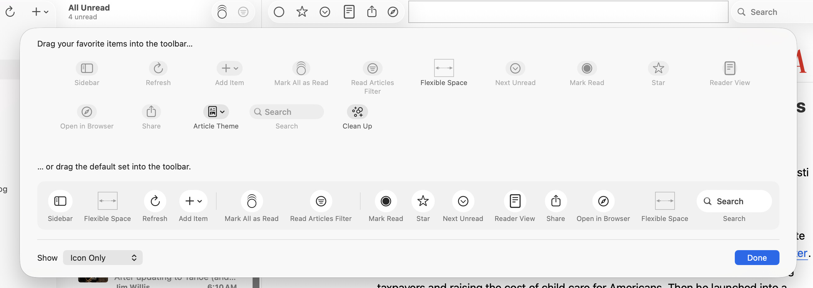 If you customize your toolbar, can you put that item back where it goes? And does it stay there? Or is something going on that I just haven’t seen yet on my computer?